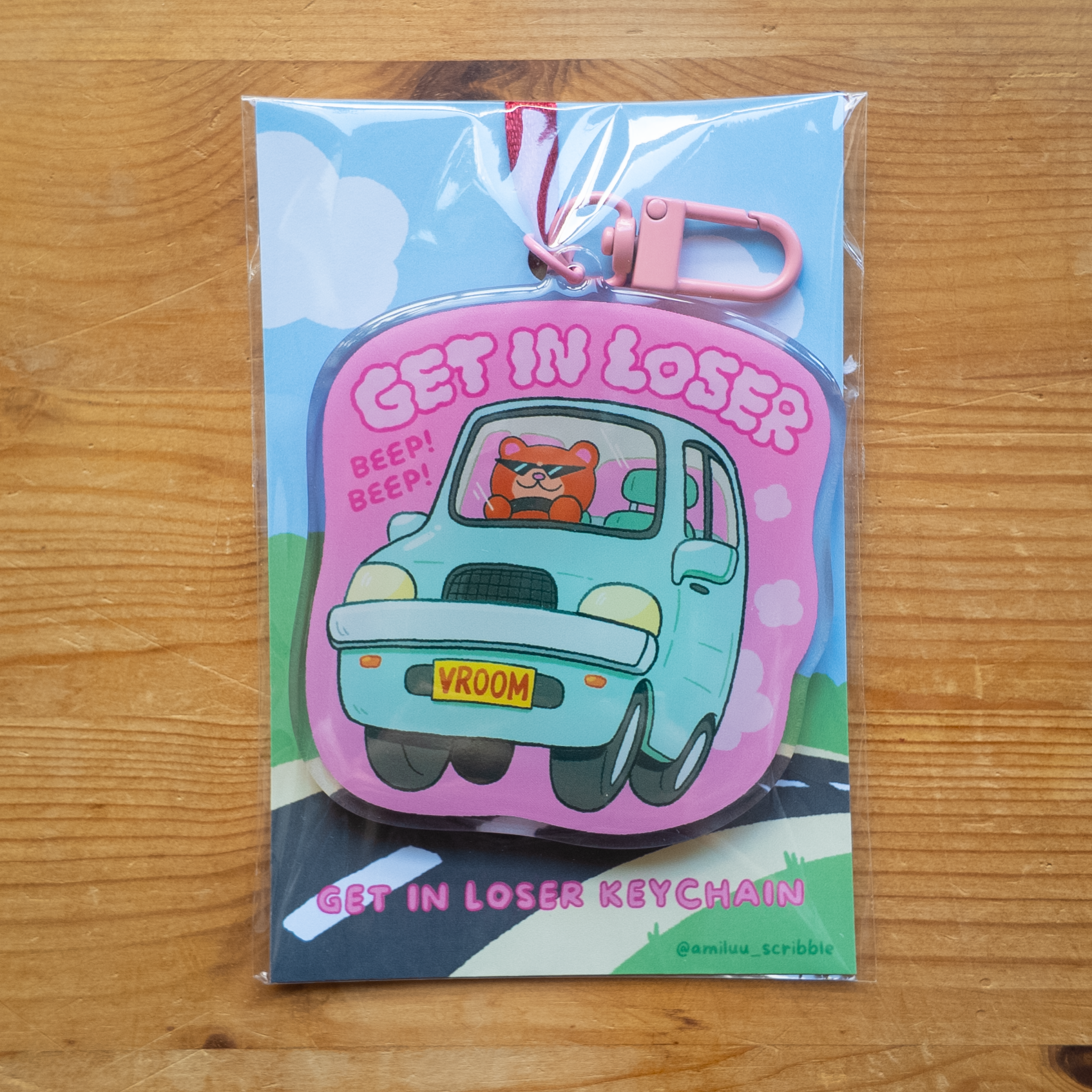 3" Acrylic keychain | Front side epoxy for extra protection | Double sided different design | Pink U-shaped Hook Clasp
