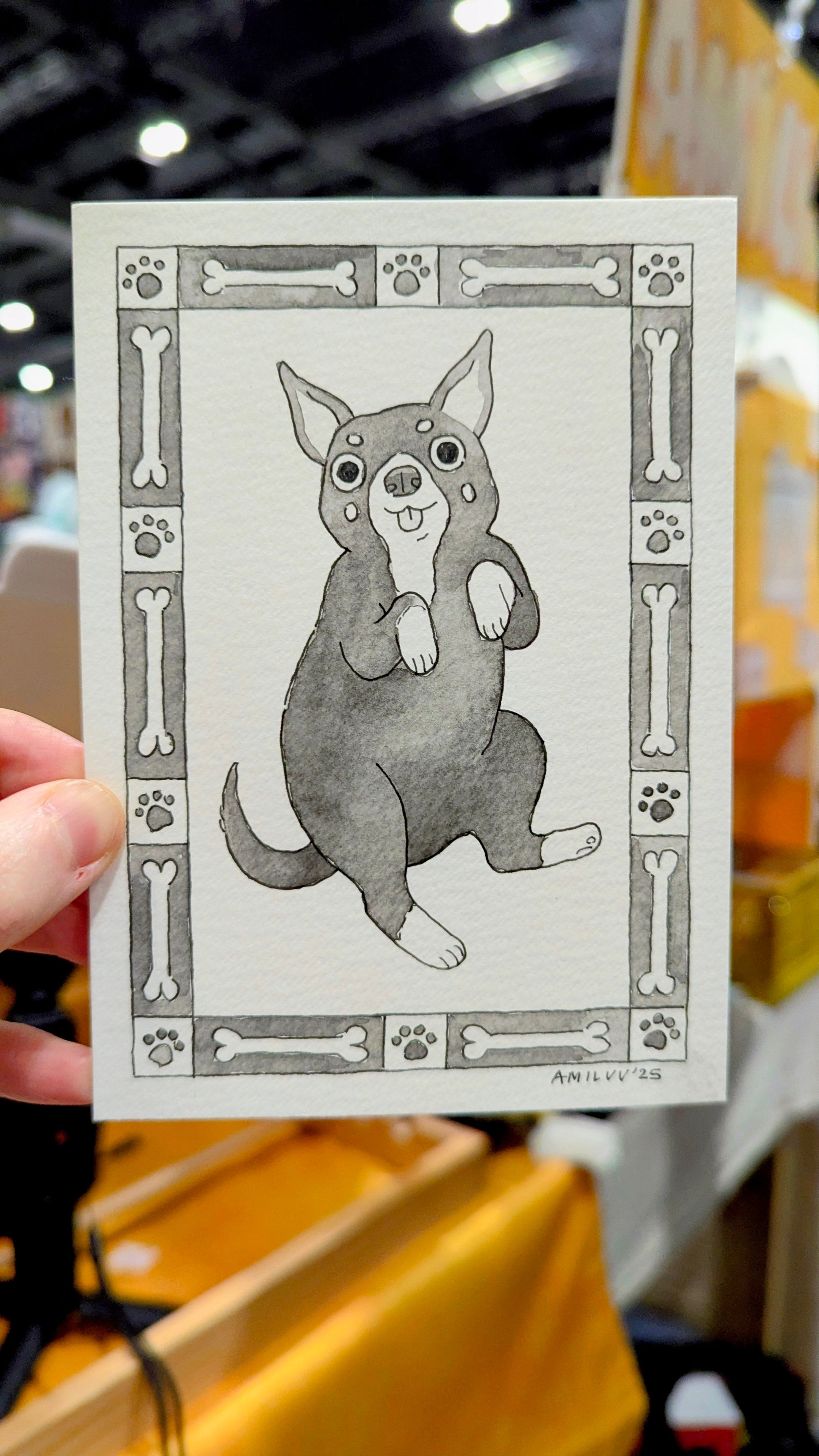 You can order your own bespoke pet portrait! Hand drawn by me using ink on a postcard sized watercolour paper.